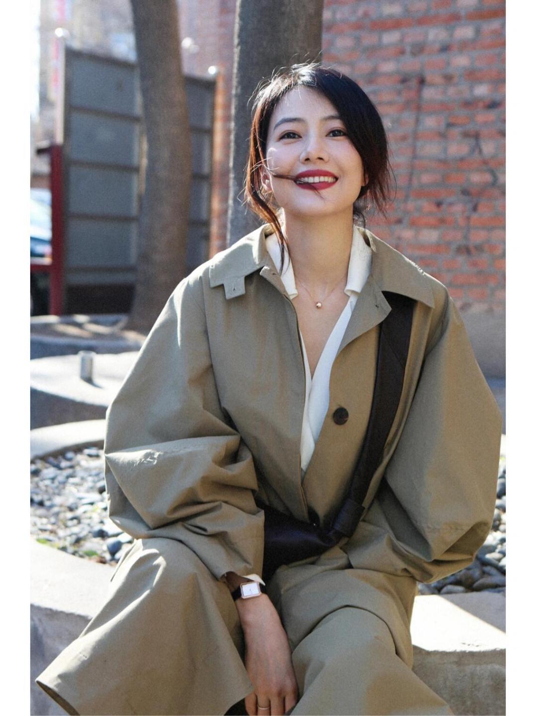 高圆圆的风衣穿搭给人眼前一亮的感觉,45岁看上去像28岁。