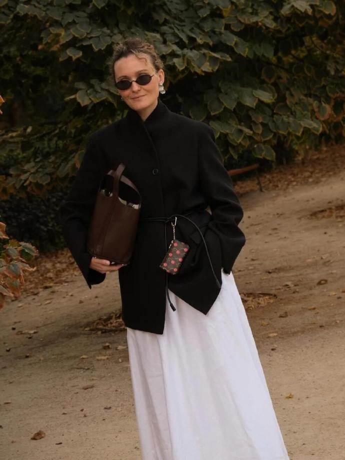 除了搭配思路,jealizee 对单品的选择也很有参考价值,她选的衣服大多版型利落、材质有质感,比如垂坠感好的西装、软糯的羊毛针织衫、透气的棉麻面料,这些材质不仅穿着舒服,还能让基础款摆脱廉价感。而且她很懂扬长避短,小个子时会选高腰设计的下装,搭配短款上衣或把上衣塞进裤子里,悄悄拉高腰线;微胖身材则偏爱直筒、H 型的版型,避开过于紧身的款式,用宽松度恰到好处的衣服修饰身形。配饰方面,她从不贪多,一条细项链、一对小巧的耳环、一个简约的腋下包就足够,这些小细节既能丰富造型层次,又不会显得杂乱,完美契合了 “松弛感” 的穿搭内核。