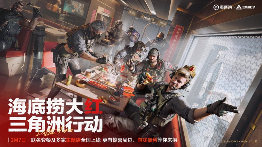 2月7日,《三角洲行动》与海底捞展开联动,全国多家主题门店开放,不仅有联名套餐及多家主题店全国上线,更有惊喜周边以及游戏福利等待干员们探索。