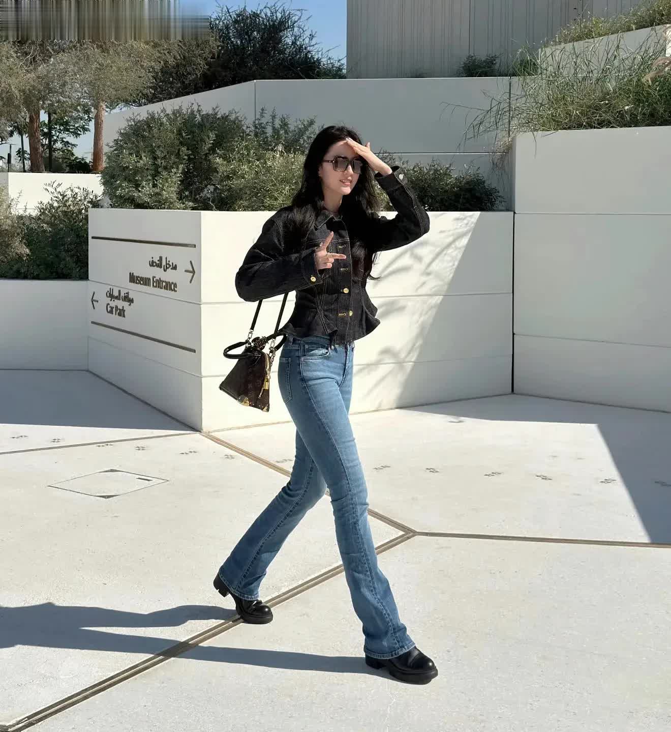 对于小个子来说,除了上面这套可以借鉴,下面这套穿搭也很值得借鉴!牛仔短夹克选择收腰款,凸显腰部线条!搭配修身微喇牛仔裤和黑色短靴,日常穿搭也可以穿出曲线感!