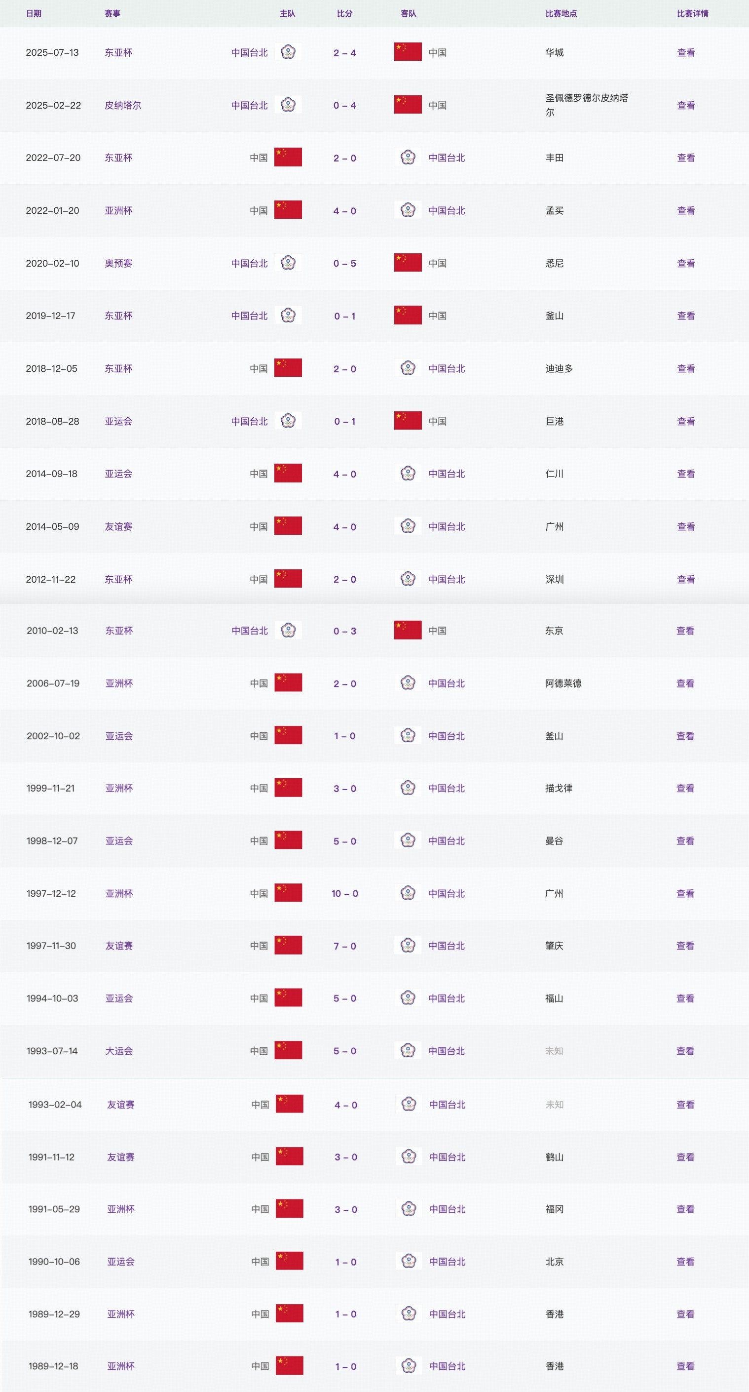 中国女足历史上与中国台北女足交锋26次,取得全胜,攻入87球仅失两球,两粒失球都发生在去年的东亚杯(4-2)。