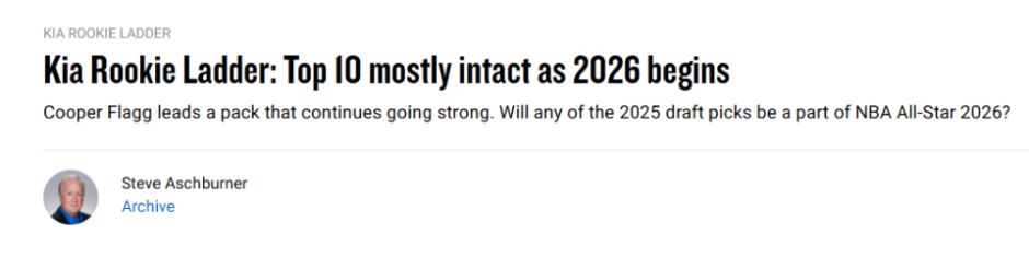 北京时间1月8日,NBA官网更新了新秀榜,独行侠状元弗拉格继续领跑,黄蜂4号秀克努佩尔排名第2。位列第3-5位的依次是76人探花埃奇库姆、鹈鹕13号秀奎因和灰熊11号秀考沃德。以下是具体排名和解析——