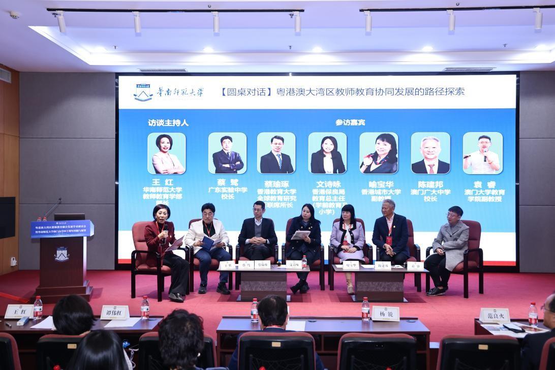 圆桌对话环节,华南师范大学教师教育学部部长、粤港澳大湾区教师教育学院院长王红教授与粤港澳三地的中学校长、高校专家等围绕“粤港澳大湾区教师教育协同发展的路径探索”各抒己见,碰撞思想火花。