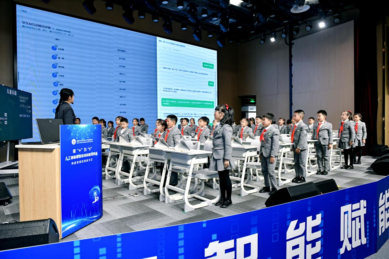 “同学们,AI根据大家的预习数据,为每个人准备了不同的《江雪》赏析任务单。”语文课堂上,教师借助平台精准推送学习资源;数学课《儿童乐园》中,AI实时捕捉学生答题数据,动态调整教学节奏。