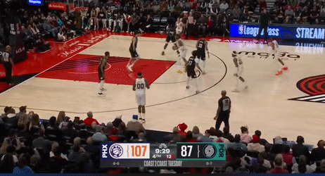 第三节开拓者卡马拉拿下6分,太阳伊戈达罗拿下8分,第三节结束开拓者82-100落后太阳