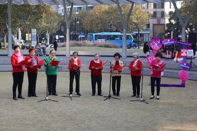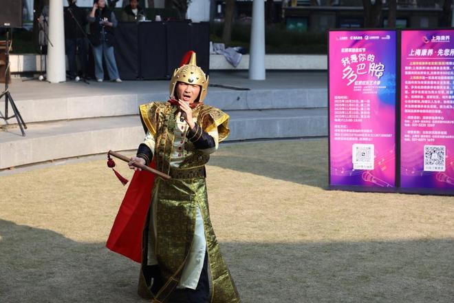 除了精彩的演出,现场还设有多个服务摊位。上海市健康养老发展(集团)有限公司带来普惠养老知识,尚体健康科技(上海)有限公司展示了数字化健康服务,吸引不少市民驻足咨询与体验。