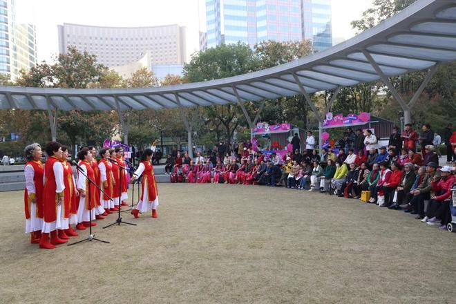 11月22日下午,长宁区虹桥公园源亭草坪上歌声飞扬、舞姿翩跹,“我是你的多巴胺——虹桥欢乐艺术季”第四场活动热闹上演。市民们带来了歌曲、戏曲、舞蹈、古琴演奏等丰富多彩的节目,现场还设有“分贝PK”投票、观众互动学舞、红包抽奖等环节,共同打造了一场真正由市民共创共享的“多巴胺”文艺盛宴。
