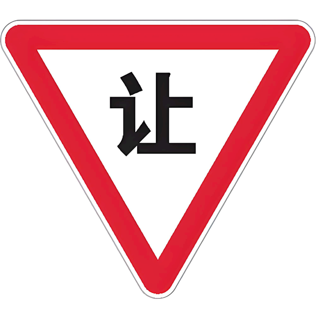 这个倒三角形、白底、红边框,中部写有黑色“让”字的标志牌,是“减速让行”标志,驾车行经交叉路口,看到这个标志时,驾驶人应当降低车速,并让其它方向上车辆优先通行。