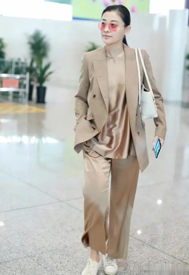 再来说说西服套装,上身的西服外套柔软舒适,设计精致,穿上它瞬间提升气质。内搭的面料具有光泽感,轻盈柔软,给人一种轻松舒适的感觉。而裤子设计宽松,触感柔和,不会给肌肤带来不适。梅婷还搭配了一款白色皮质包包,包身和肩带都显得非常有质感。鞋子的选择可以是高跟鞋,拉长身形,也可以是休闲平底鞋,舒适又时尚。