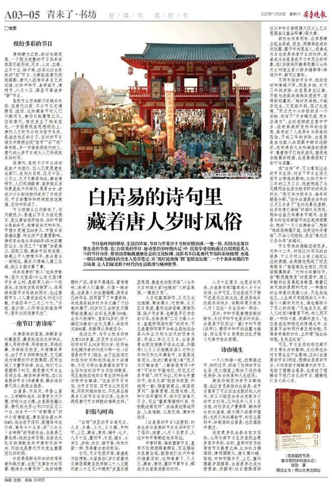 《白居易的节日》注意到,时尚也在白居易的节日生活中打下了烙印。游宴、八月十五赏月、大过中和节等都经他书写过。