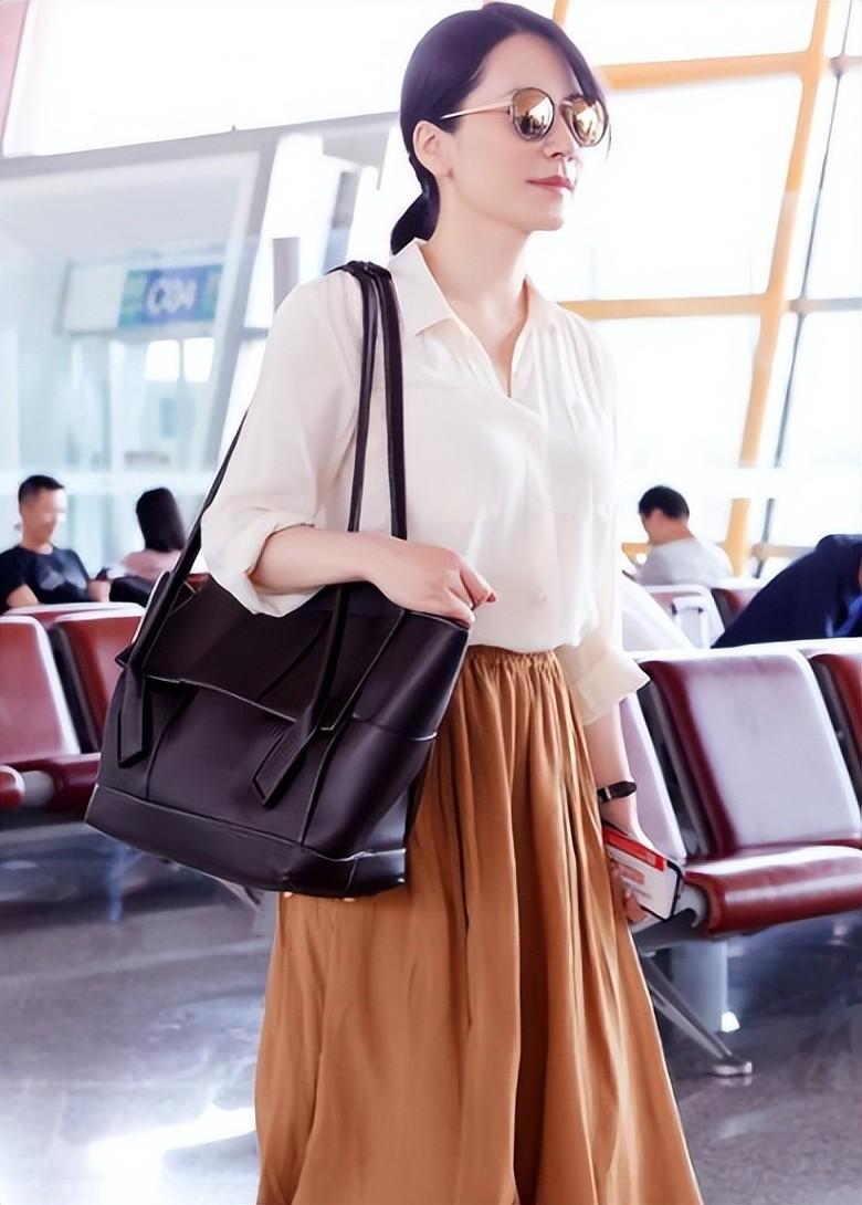 54岁俞飞鸿穿着十分洋气,面部皮肤紧致有光泽,看着像30岁。