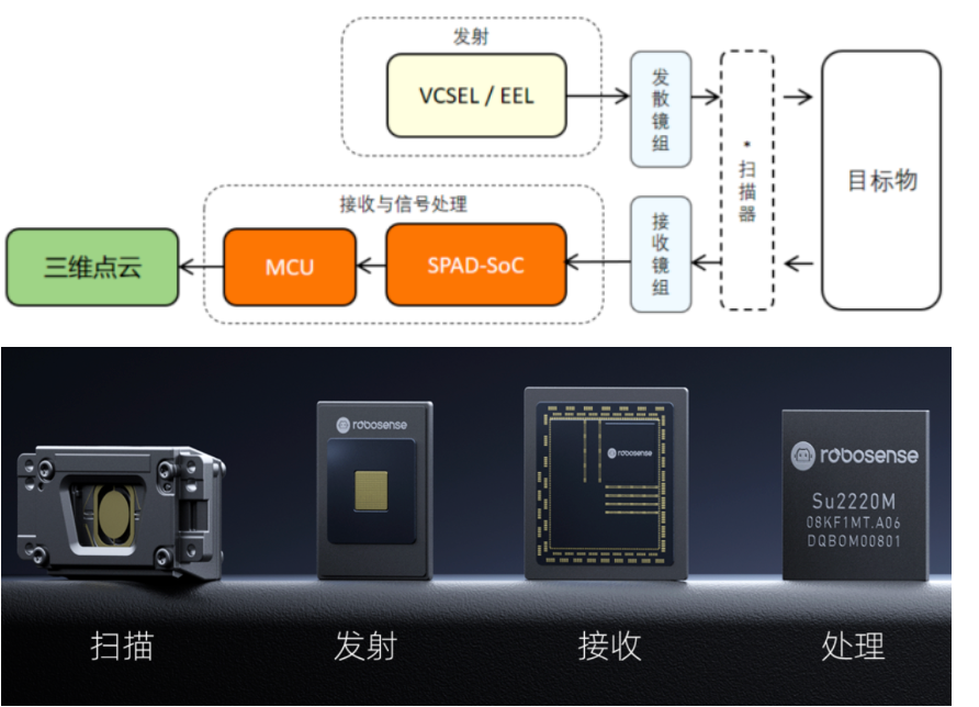 速腾聚创在之前的技术路线出现偏差以后,也开启了固态激光雷达的开发,APU,MCU集成了并且在激光雷达芯片中引入RISC-V作为APU和MCU架构。