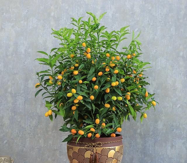 金桔在秋冬季节非常常见的盆栽植物,满盆挂满黄橙橙的果子,桔字里面有吉祥的吉字,寓意着吉祥富贵,是常见的年宵植物,它是一款常绿灌木,在南方地区可以地栽,即便是到了冬季,叶片依旧浓绿无比,观赏价值极高,很适合当作观赏植物培育。金桔的花期是在夏季,花朵呈白色,完全绽放后清香无比,和旁边的绿叶搭配起来,给人一种眼前一亮的感觉。到了秋季,植株会挂满果子,走近的时候还能闻到一股独特的果香味。果子能长久地停留在枝头上,即便是到了寒冷的冬天,也不会出现自然掉落的现象。