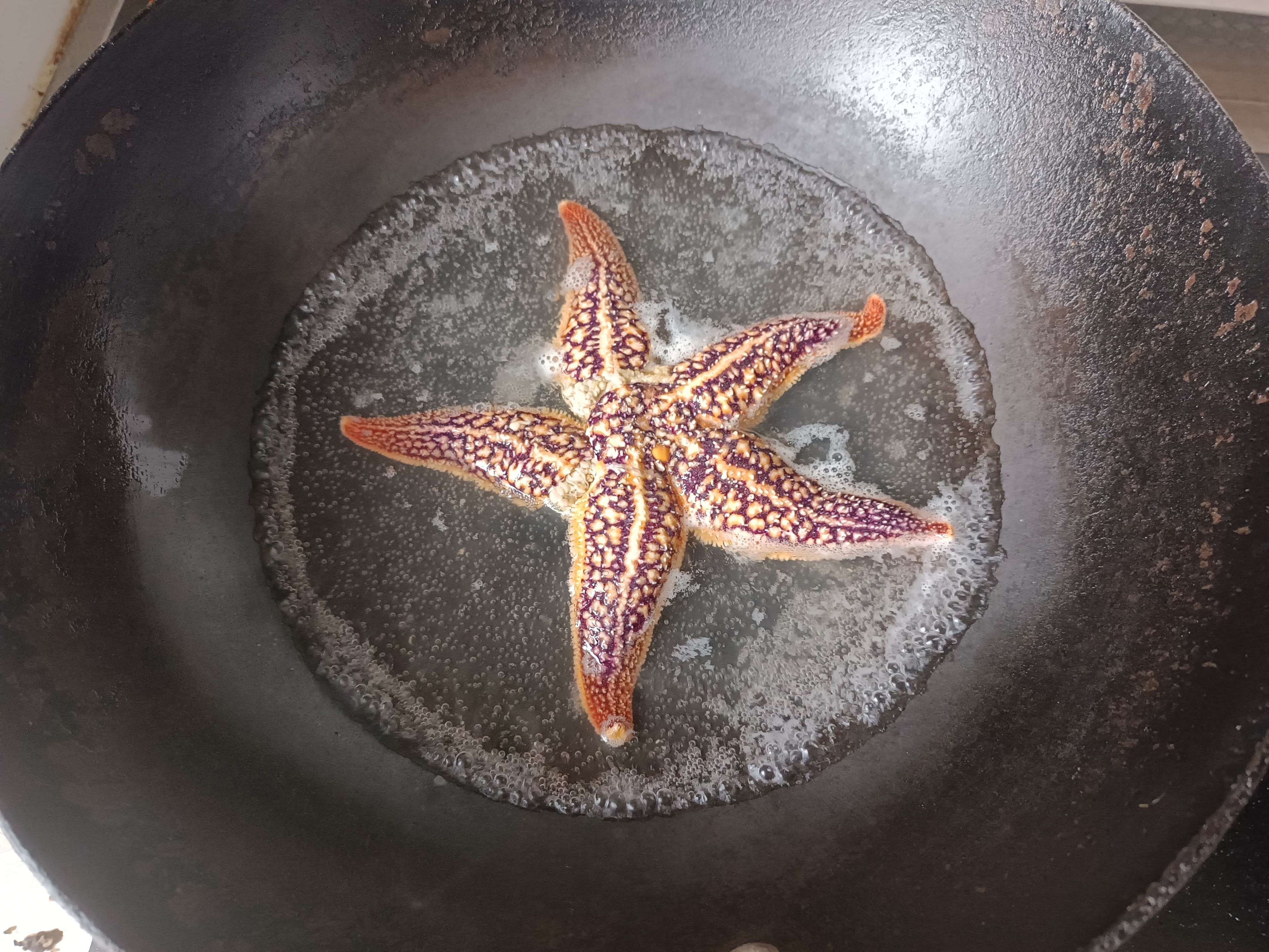 曾经有一段时间黄海地区海星泛滥,对沿海养殖造成了巨大损害。然后我就去码头买回来试试能不能吃,看下有没有通过吃这种方式解决问题的可能性。