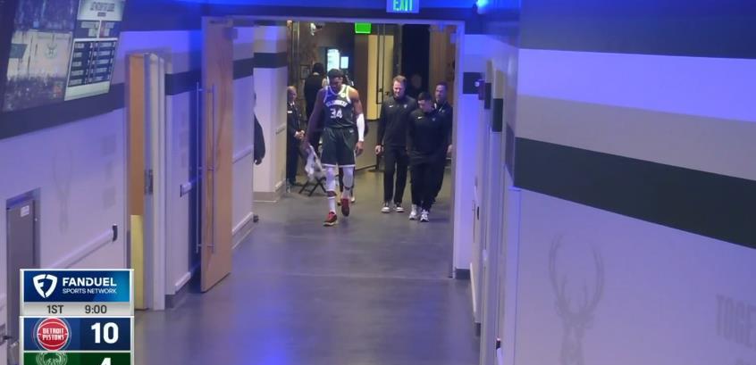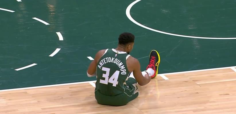 比赛仅仅开打3分钟,第一节9分05秒,字母哥持球突破助攻队友轻松上篮得分,随后字母哥回防,岂料字母哥突然受伤倒地,在无对抗的情况下倒地不起,捂着右小腿,他的哥哥十分担忧;字母哥起身后自己走回替补席,坐在场边十分沮丧,之后他返回更衣室接受检查。