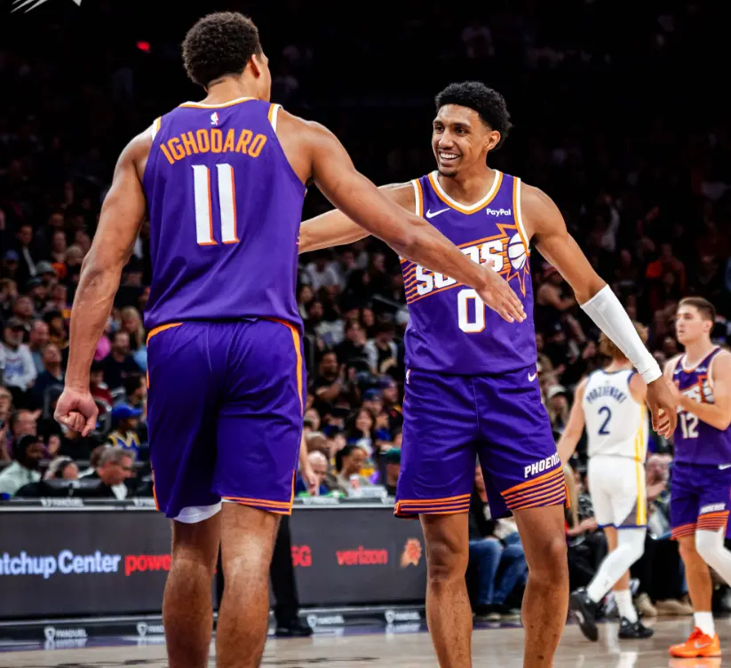 北京时间12月19日太阳主场对阵勇士,全场比赛结束太阳以99-98成功击败了勇士。本赛季的太阳虽然是打出了不错的表现,其中场均10.8个抢断更是排在联盟第一的位置,但是近期太阳出现问题遭遇2连败,如今太阳暂时排在西部第七的位置。勇士这边库里在复出后表现出色,两场比赛库里分别砍下了39分和48分,可惜库里表现如此出色勇士却未能赢球,勇士在遭遇2连败后排在西部第八的位置。本场比赛太阳首发为:吉莱斯皮、布克、狄龙、奥尼尔和马威,勇士首发为:库里、穆迪、巴特勒、格林和波斯特。