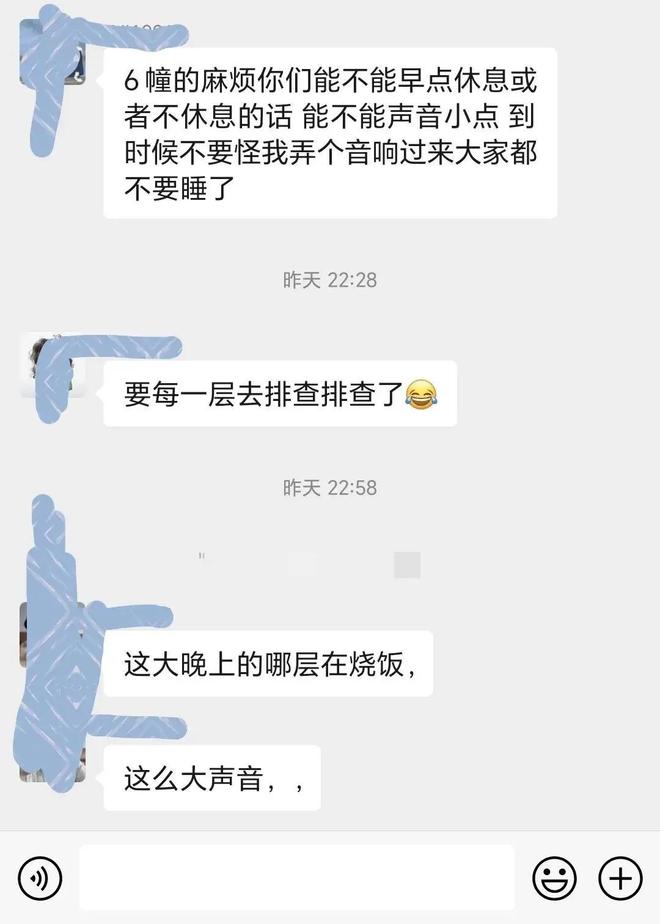 结果有人在群里回复:“我们在造小孩子,这是我们自己的事,房子不隔音,找开发商去,嫌吵买别墅去,不要没事在群里点我!”
