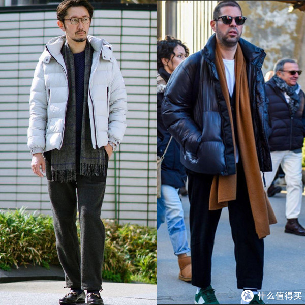 冬天穿羽绒服想要烘托出时尚氛围感,自然少不了配饰的加持。但对于中老年男人来说,配饰又不能太过张扬个性,因此“围巾”便成了最佳选择。围巾选择羊毛、羊绒款式,佩戴起来舒适保暖,其颜色尽量与羽绒服有鲜明对比,撞色搭配制造色彩冲突美学,赢得不费力的时髦。