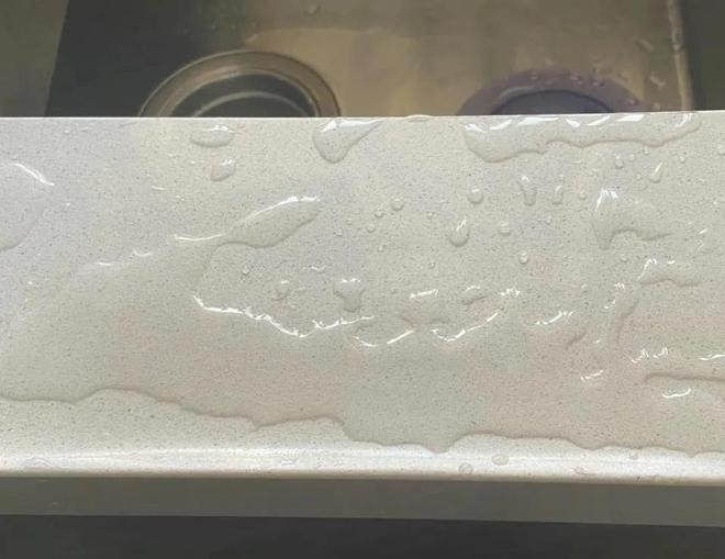在装修台面时,不需要做挡水条,一块大平板放在上面就行了。