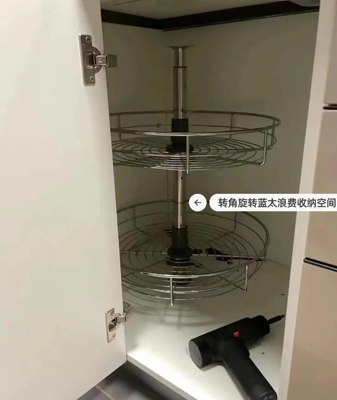 建议大家在这个位置不装旋转拉篮,直接做成错层的隔板就行了。