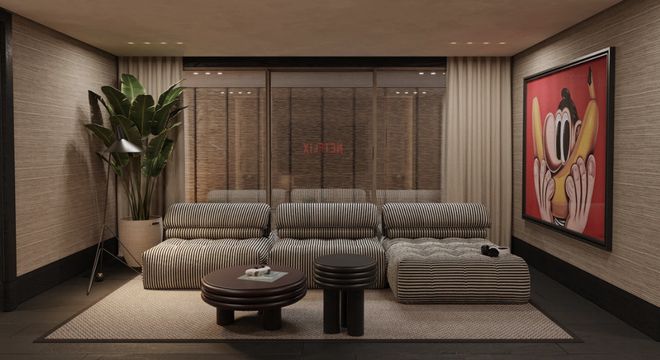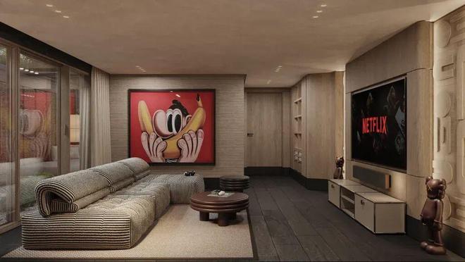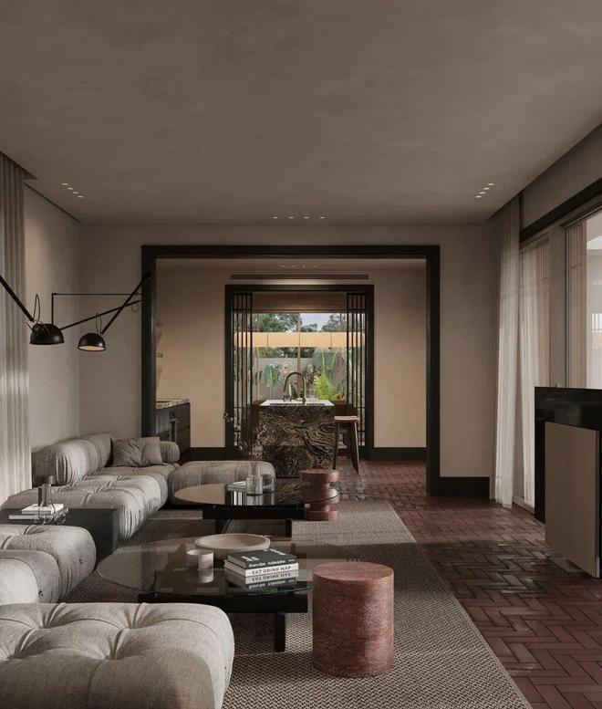 家里有两个起居区也太贴心了!一处对称布局,宁静又平衡,两张矮沙发对着放,壁炉当视觉焦点,适合安安静静独处或小聚;另一处更松弛,模块化矮沙发怎么瘫都舒服,内置储物柜和简洁媒体墙让空间干干净净,一幅大胆的艺术品点睛,又不破坏整体的内敛感。