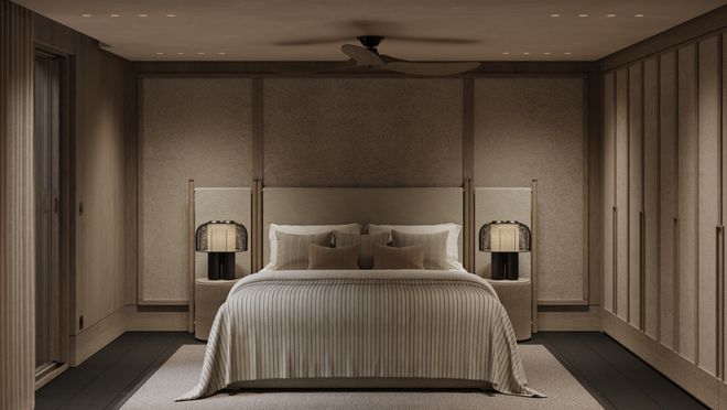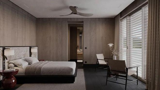 卧室完全是治愈系!温暖的木饰面+柔和的中性色,像被温柔包裹住一样~ 矮床和带微妙图案的床头板增添了肌理感,却不杂乱。阳光透过层层窗帘洒进来,窗边的小休息区,随手拿本书就能待一下午,太惬意了。