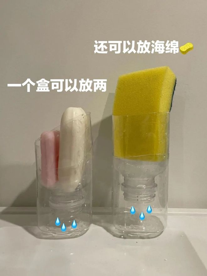 比如用塑料瓶改造肥皂和海绵的沥水盒,看似实用省钱,实际上塑料边缘很容易划伤手,并且极不美观。