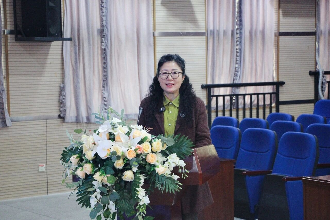 白俄罗斯塞尼茨基市第二学校校长贝岑科·艾琳娜·列奥尼多夫娜女士致辞。她认为两校合作是教育界的珍贵联结,期待通过学生互动、教师互鉴,让友谊之花持续绽放,让两国青少年以尊重与理解对话世界。