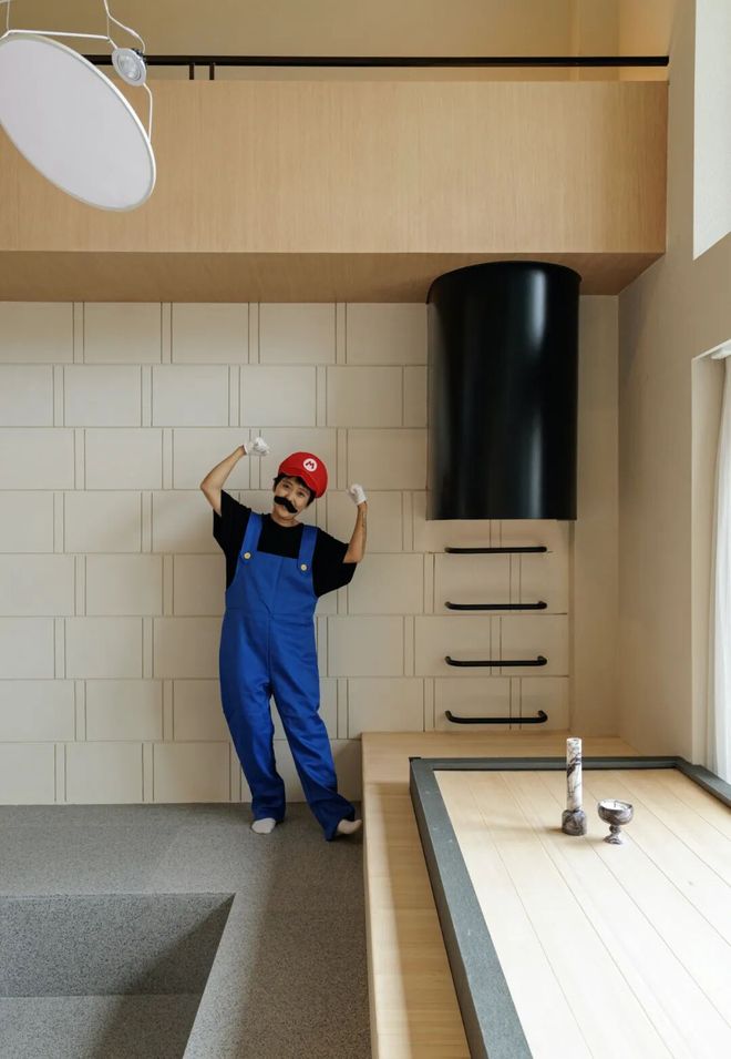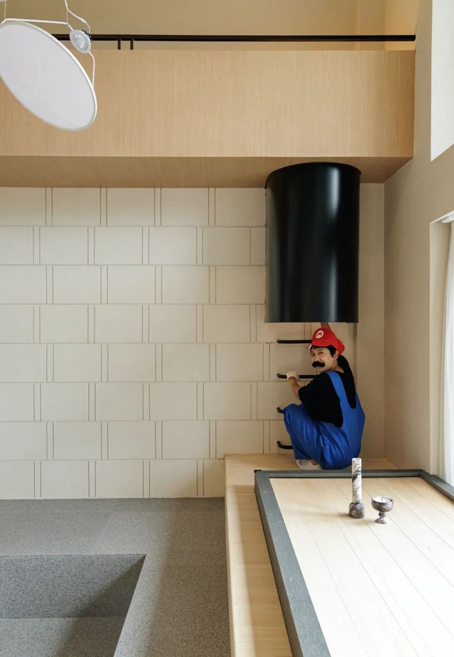 除了旋转楼梯,侧边还有一出神秘有趣的甬道,将超级马里奥冒险之旅搬到了家中。甬道巧妙串联起滑梯出口与休闲区,形成一个完整的冒险循环:孩子们可以钻入桶中,然后再顺着滑梯俯冲,趣味十足、又小有冒险之感。