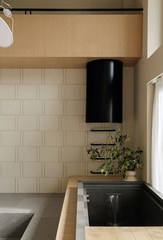 盖板开合着,这里是泡汤池。合上盖板,这里则化身成一面书桌,可阅读、思考,倚窗而建,听习习春风、看郁郁葱葱......亦是一种心灵上的洗涤。也不必担心桂木板会变形等,这种材质不仅遇水稳定,更会在湿润时散发自然木香,给每一次使用增加了一重感官治愈。