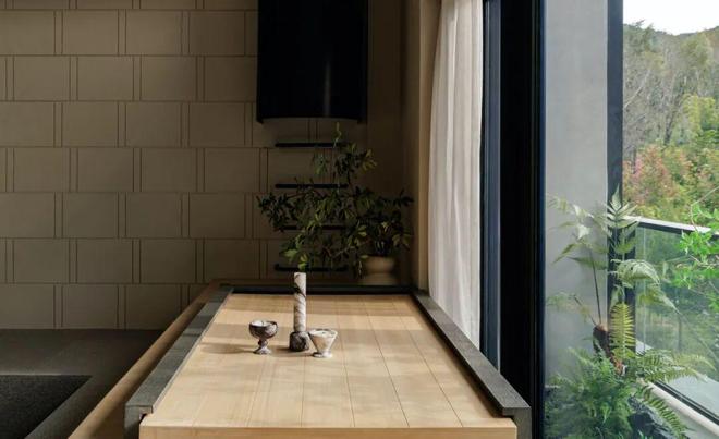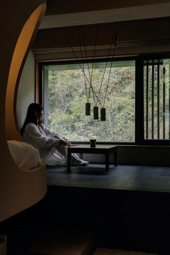 山林中,窗景是不可辜负的。而在这里,竟然将泡汤区搬到了窗边,“山景泡汤”,与自然交融,奢侈迷人、却又那么自在和谐。潺潺流水、树影婆娑,自然静谧,一场身心疗愈之旅就此蔓延开来。