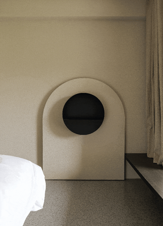 为了解决主卧的隐私性,在泡泡球的位置还独创了一面弧形幽灵门,像个通往神秘世界的通道。无论开合,都营造出了一场温柔的白日梦。