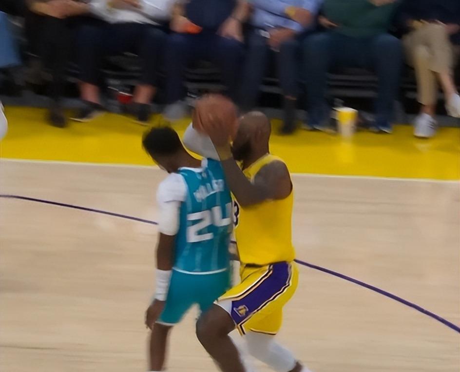 湖人对阵黄蜂的比赛进程让人没有想到,湖人队竟然和东部倒数第4名打的有来有回,詹姆斯在比赛当中的一个回合引爆了争议和讨论,他直接肘击对手球员米勒,裁判竟然吹了对方的犯规,甚至连挑战都失败了。