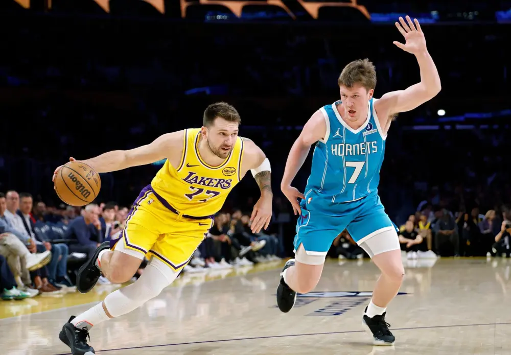 首节比赛中,东契奇便火力全开,他在弧顶处连续命中三记三分,此外连续中投和上篮得手,单节12投7中独得19分。次节比赛中,东契奇仅有一次出手而且没有命中。第三节比赛中,湖人队陷入被动,东契奇挺身而出,他不断冲击黄蜂队篮下得手,并且在弧顶处连续命中关键三分,带领湖人队缩小分差,在这节比赛中,东契奇单节再次拿到15分。