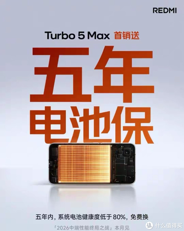 不过有几个关键点要盯紧:这个五年电池保只有REDMI Turbo 5 Max这一款机型有,其他小米、红米机型暂时没有;而且必须是首销期间购买的用户才能享受,首销期一般是3-7天,线上线下官方渠道同步开启,之后再买就只能享受常规的1年保修了。