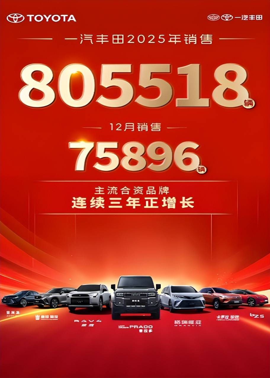 当中国汽车市场在2025年迎来1290款新车扎堆上市的盛况时,丰田却以一种近乎反常识的姿态在新能源赛道上稳步前行。这家曾被诟病转型迟缓的日系巨头,凭借混动技术的深厚积淀与本土化战略的彻底重构,在合资品牌市占率腰斩至30%的逆境中,交出了令人瞩目的成绩单:一汽丰田混动车型占比达47%,广汽丰田更突破50%,TNGA-K平台高端车型占比超60%。