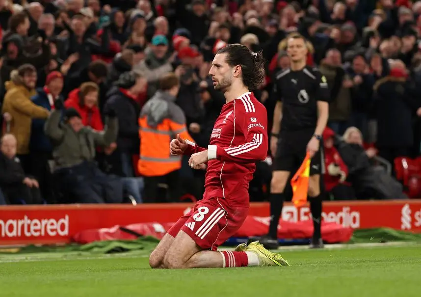 伤停补时第93分钟,阿利森禁区内犯规,送给了曼城一粒点球,哈兰德稳稳主罚命中,打破了自己在安菲尔德球场的进球荒,将全场比分定格为了2-1,比赛最后时刻,索博斯洛伊破坏了曼城绝对进球的机会,被主裁判直接红牌罚下。