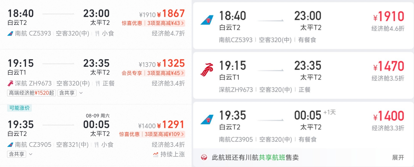 不仅仅是OTA平台,红星资本局注意到,航旅纵横在价格上还遭到航司“背刺”。