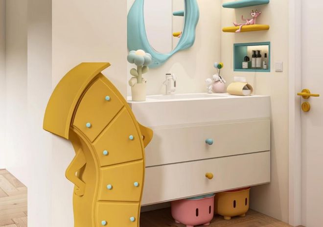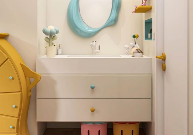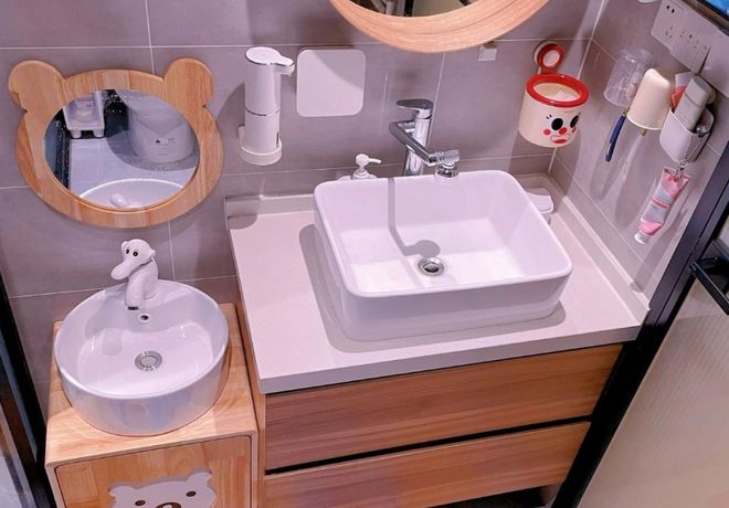卫生间不放洗手台,还有一种装修设计,就是为儿童设计专用洗漱区。