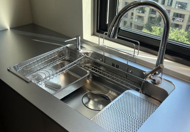 可以选择一个深度在22厘米以上,宽度在60厘米以上的大单槽,再配合一个可移动的不锈钢沥水篮或者是抽拉水龙头。