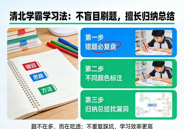 刷题是很多学生提分的常规操作,但清北学子在这上面讲究精而不是多。他们不追求题海战术,而是把每道题吃透。错题本上用不同颜色标注原因、思路和方法,绝不让同一个错误反复出现。通过不断归纳总结,他们能精准找到知识漏洞,有针对性地补强。这样的习惯,让学习效率高了不少,也避免了无用功堆积。基础题练到几乎零失误,难题自然就成了基础的组合,解起来水到渠成。