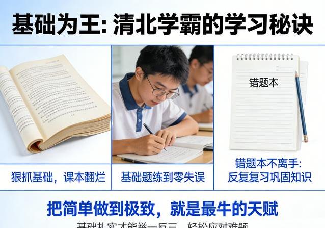 基础知识的重要性,很多学生到后期才慢慢体会。清北学子的课本往往翻得起了毛边,基础题练得滚瓜烂熟。他们相信,把简单的事做到极致,就是一种了不起的能力。基础牢了,举一反三就容易多了。错题本成了他们的秘密工具,反复复习让知识越扎越实。面对各种题型时,心里有底,发挥也更稳定。