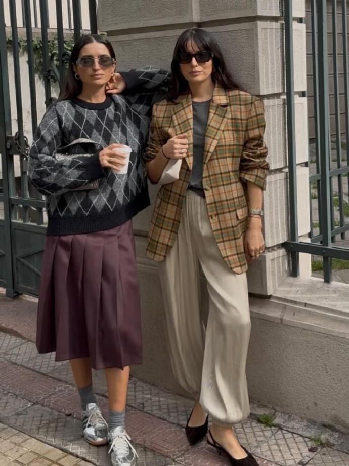 kambal 最让人眼前一亮的,是她对 “复古元素的现代运用”。打开她的主页,不难发现格纹、灯芯绒、波点这类复古单品频繁出镜,但她从不会让整体造型显得 “老气”。比如一件复古格纹西装,她不会搭配传统的衬衫西裤,而是内搭一件亮色的短款吊带,下装选一条高腰牛仔阔腿裤,脚踩一双白色厚底帆布鞋,用 “复古西装 + 休闲单品” 的组合中和了正式感,既保留了格纹的经典韵味,又增添了青春活力,日常出街或打卡咖啡馆都很合适;再比如一条灯芯绒半身裙,她会搭配一件简约的白色短款卫衣,外搭一件 oversize 的黑色皮衣,用柔软的灯芯绒与硬朗的皮衣形成质感对比,配饰上只戴一顶黑色棒球帽,让整体造型在复古与酷感之间找到平衡,既不夸张又足够吸睛。这种 “复古元素 + 现代单品” 的搭配思路,特别适合想尝试个性风格又怕驾驭不了的人,不用大面积堆砌复古元素,只需一两件关键单品,再搭配日常服饰,就能轻松打造出有层次的造型。