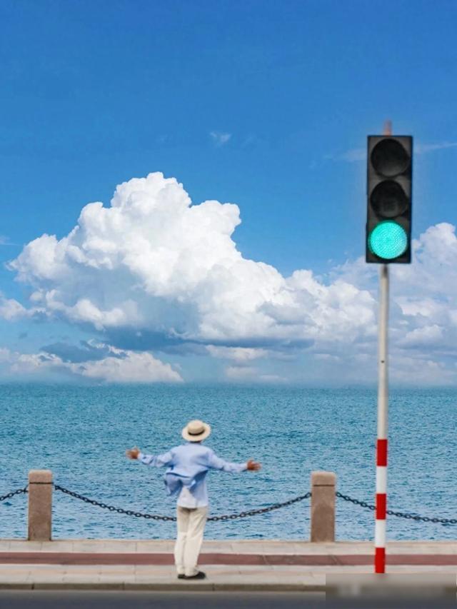 这3条通往大海的小路都位于滨海中路,可City Walk一站式打卡。红灯时站在交通指示灯旁,绿灯时抓拍动态走路, “烟台小镰仓”拿捏!