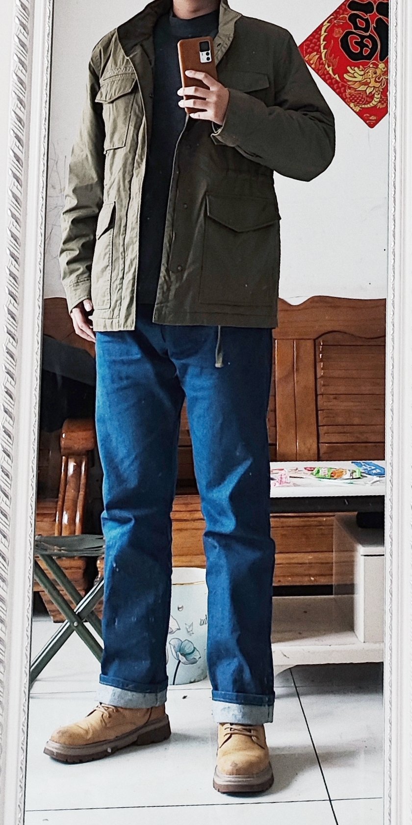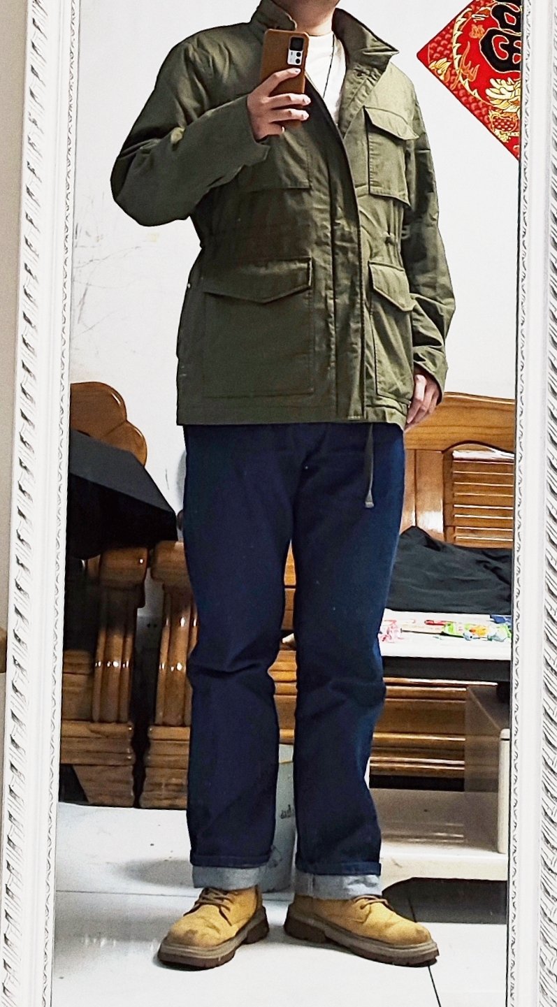 我的这款实在jeep spirit线下店买的,四百八,但是质量堪忧。上面的扣子穿没两个月不见了,而且也没有m65标志性的兜帽。不过裁剪样式还是不错的,肩部平整