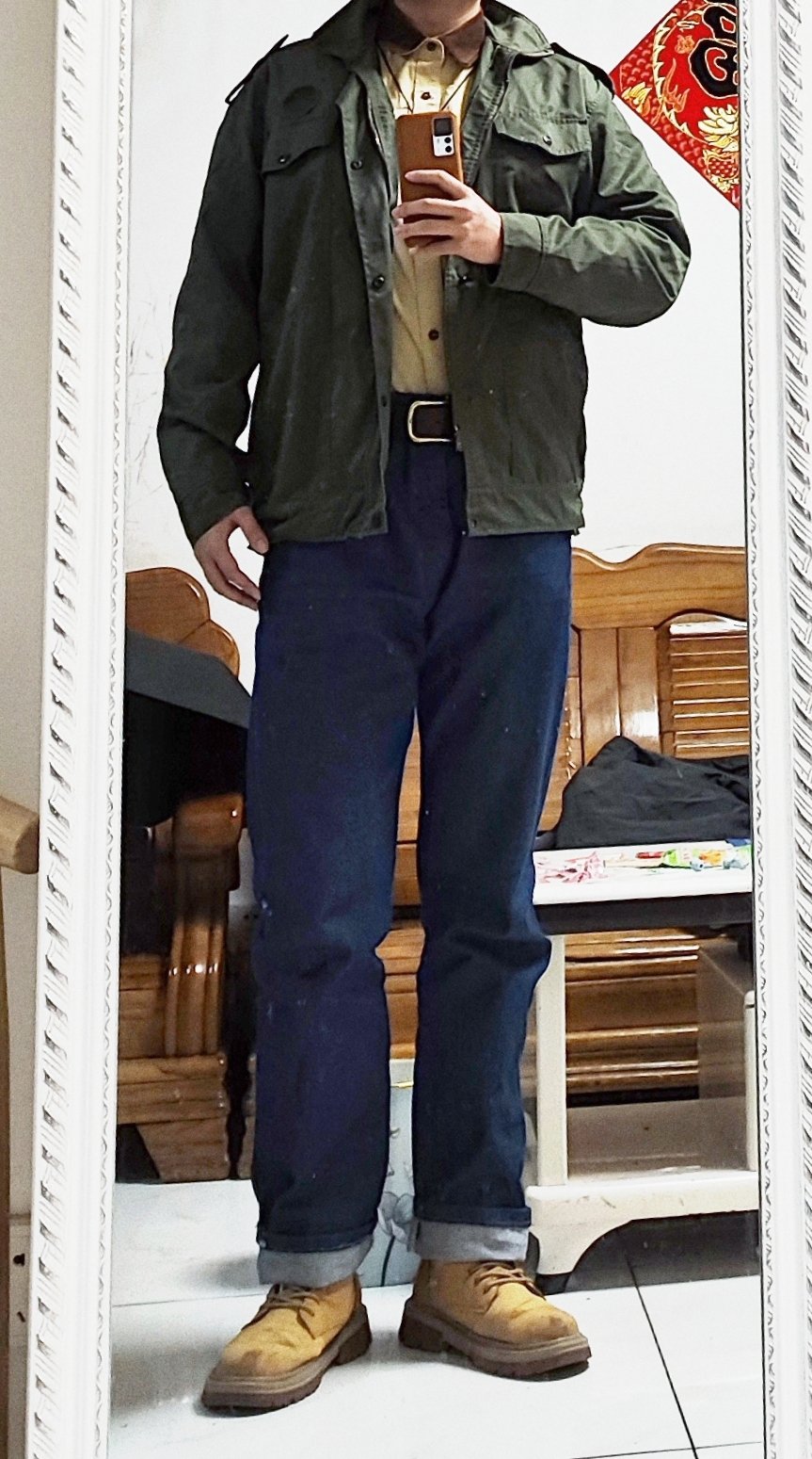 没想到我们学校的军训服竟然也是m65风衣,不过用料很差,没有版型,看个乐子就行