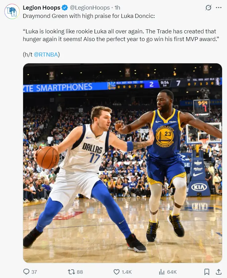 8月2日追梦格林评价东契奇:东契奇看起来又恢复成他进入联盟时那个样子,这次交易似乎激发了他的求胜欲望,下赛季可能是他拿到生涯首个MVP的最佳时机。