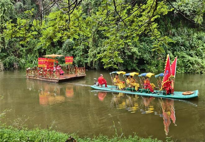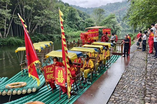 “传统花轿竹筏迎亲”民俗表演生动还原古代村民迎亲场景,成为景区文化体验的新亮点。人民网记者 时雨摄