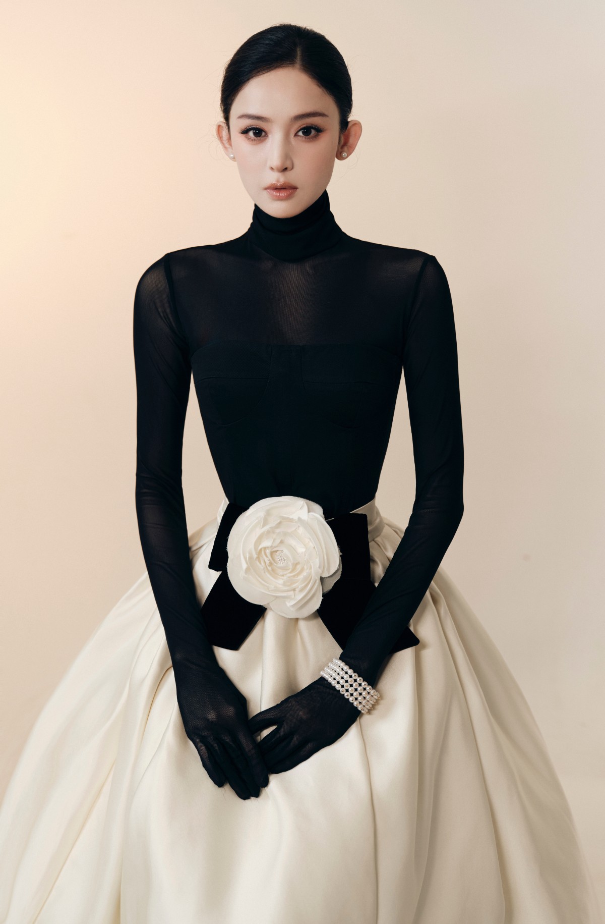 而古力娜扎的个人气质,恰是这套造型的“最佳注解”。她的五官精致立体,眼神明亮且富有叙事感,冷白皮与黑白配色的适配度堪称天作之合。盘发露出的天鹅颈与清晰下颌线,将高领设计的优势彻底释放;每一次抬手间,珍珠腕饰的光泽与肌肤交相辉映,那份从容自信,让“高级感”从抽象概念具象为穿搭的每一寸肌理、每一个姿态。她不是在“穿衣服”,而是让衣服成为了自身气质的延伸,在经典造型的框架里,活出了独属于娜扎的摩登风骨。