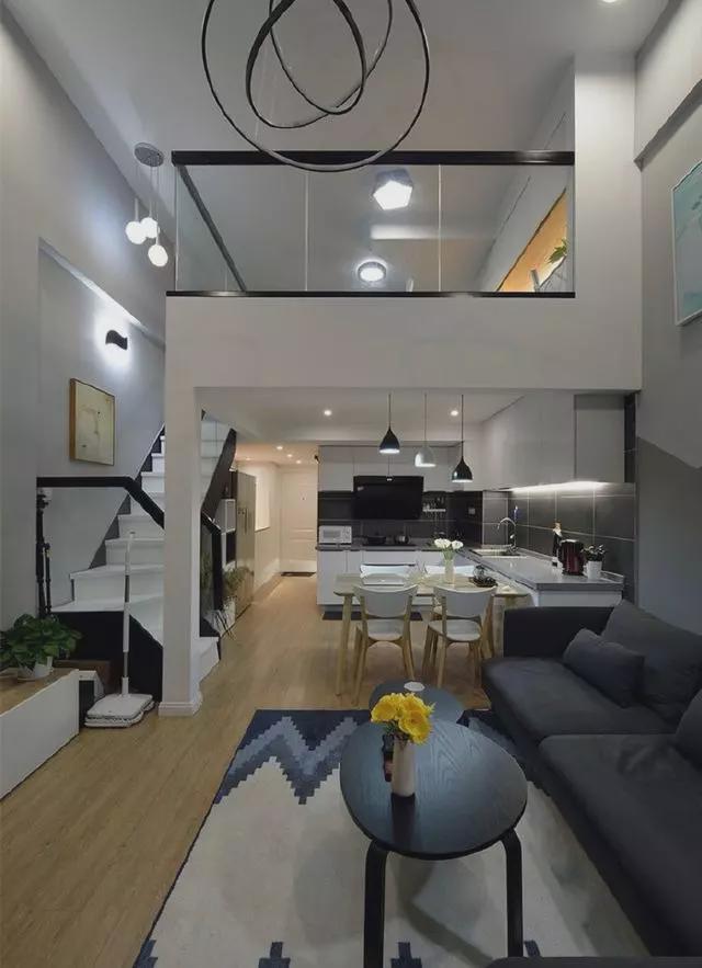 这是一套60平米的loft公寓,因为是年轻人居住,所以装修上选择了现在比较流行的现代简约风,简单又大方,全屋采用时尚的灰色调,让整个空间充满格调和气质。这套房子虽比不上豪宅,但挑高的层高照样很大气,最爱的还是二楼的卧室,温馨舒适,我想这应该就是很多人理想中的家吧,真让人羡慕,给大家晒晒。